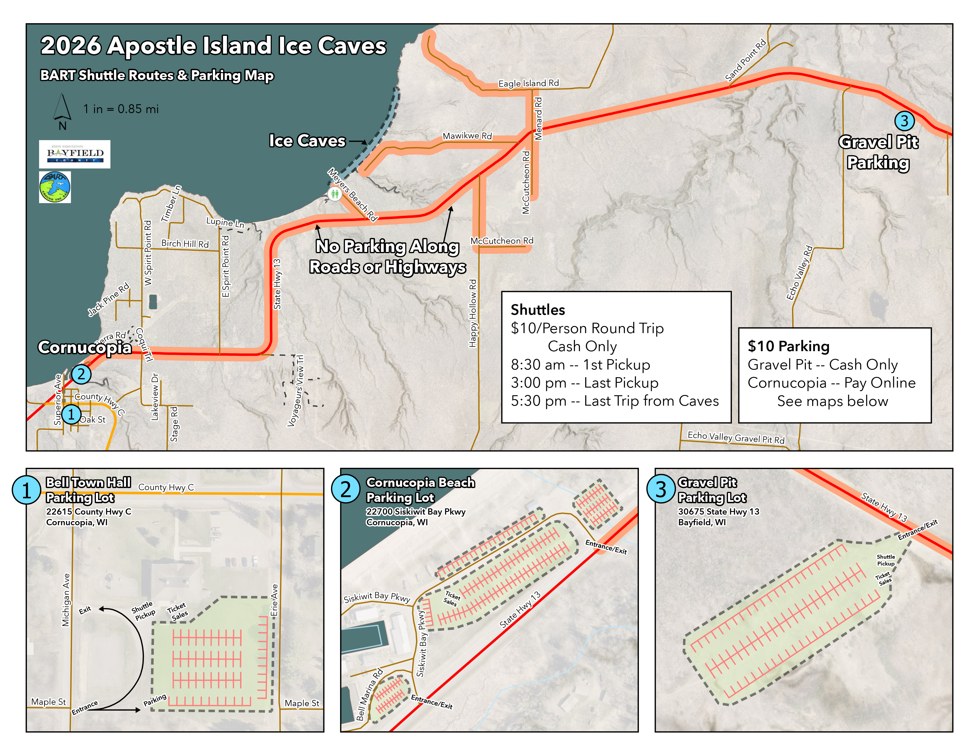 - Cornucopia Beach Parking Lot (GPS: 46.85875, -91.09975)