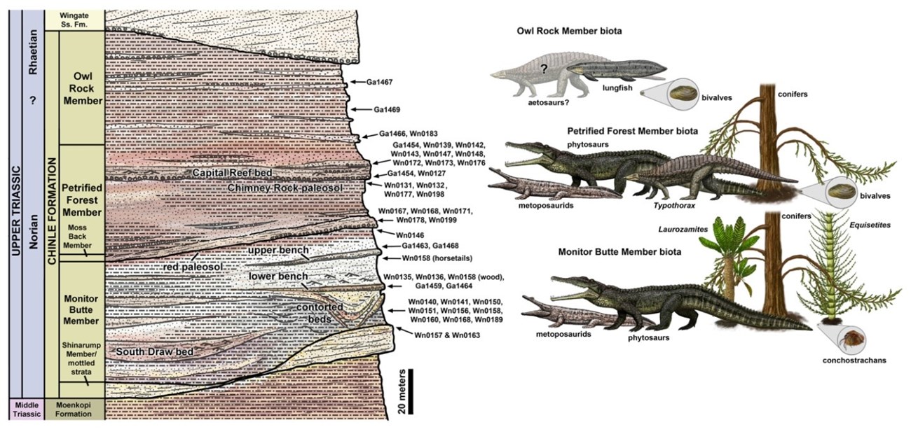 - Martz, J.W., Kirkland, J.I., Milner A.R.C., Parker, W.G., and Santucci, V., 2017, Upper Triassic lithostratigraphy, depositional systems, and vertebrate paleontology across southern Utah: Geology of the Intermountain West, v. 4. p. 99–180.