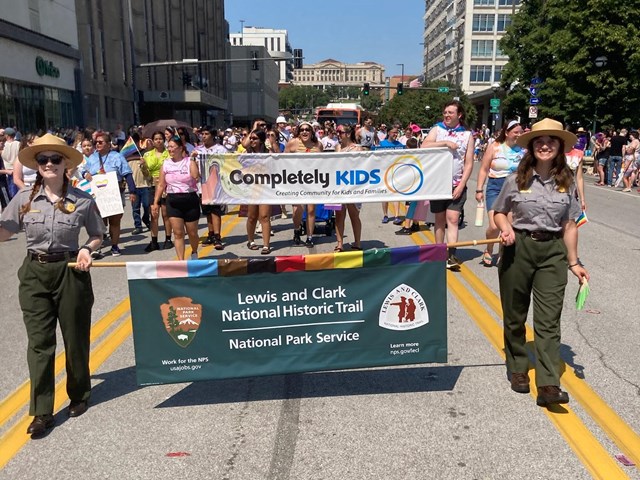Aside from facilitating daily guided walking and native garden tours at the Visitor Center, rangers also ventured out into the surrounding community at sites like the Missouri River Basin Lewis & Clark Visitor Center in Nebraska City, NE, and Fort Atkinson State Historical Park in Fort Calhoun, NE. Locally, rangers participated in the Durham Museum’s teacher night and the 2024 Heartland Pride Parade in downtown Omaha, among many other events.
