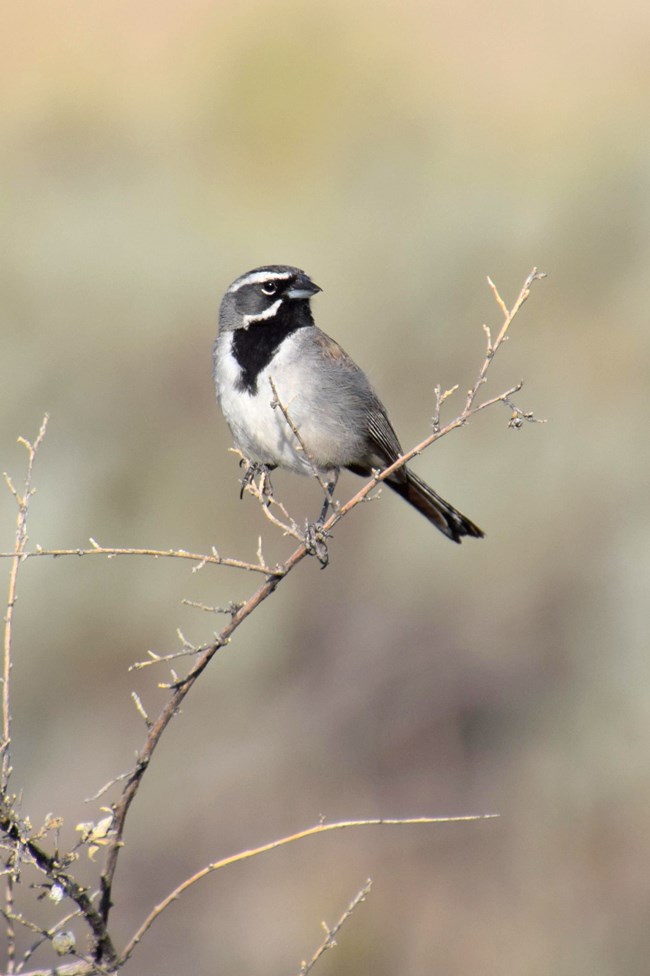U.S. breeders are progressively greyer from west to east. Birds with larger body sizes are recorded in the north and decrease modestly when moving south. Can be victim of brood parasitism by Brown-headed Cowbirds. Black-throated Sparrows in desert habitats with restricted access to water can suppress stress responses to heat and still breed in severe drought conditions.