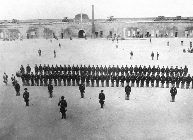 ...Things went on as yesterday the enemy were now gradually enlarging the breech made and had commenced another in the adjoining casemate…The shots of the enemy were now passing clear through the fort and striking the walls of the north magazine…when about 2 1/2 p.m. I seen Col Olmstead and Capt. Sims go pass with a rammer and sheet, we all knew that it was over with us and we would have to give up. Soon the word was passed that the "White Flag" was up. The firing now ceased on both sides. I went outside the fort and it was a perfect wreck on the south face of the fort..."