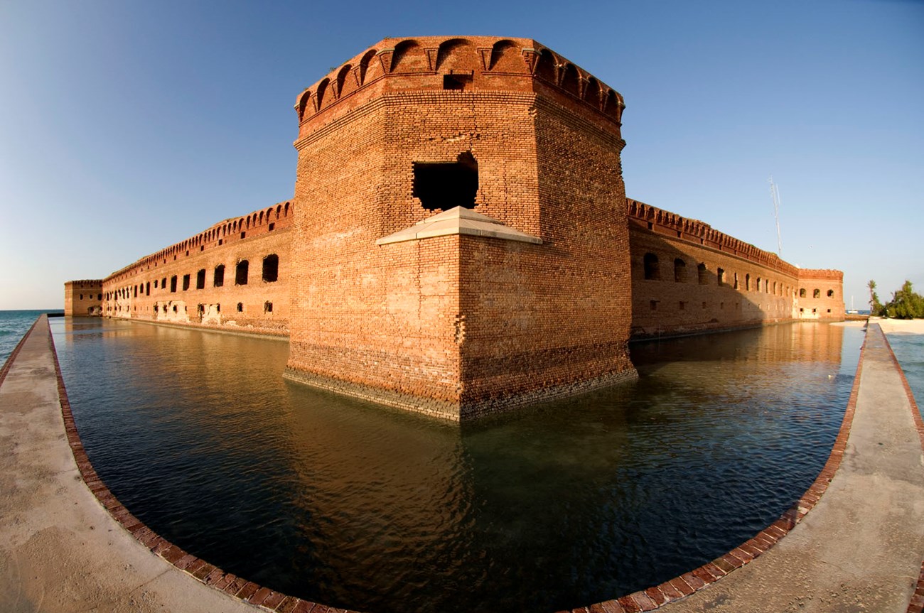 NPS The Dry Tortugas are recognized for their near-pristine natural resources including sea grass beds, fisheries, and sea turtle and bird nesting habitat. The area also lays claim to a rich cultural heritage with an array of themes. Fort Jefferson, on Garden Key, is the park’s central cultural feature and one of the largest 19th century American masonry coastal forts. Construction began on the structure in 1846, but the fort was never completed. Originally built to protect shipping access to the gulf, the fort was used as a military prison during the Civil War.
