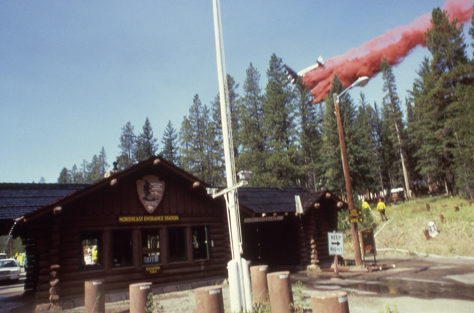 Irrigation system protecting power line near Norris Geyser Basin;