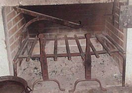 Cooking andirons - These differed from common andirons and attached to their verticals was a series of hooks to support a spitted roast. The different levels of the supports (sometimes called lugs) permitted adjustment of the distance of the roast from the fire, and thus its cooking temperature.