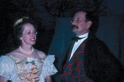 Rebecca Anderson, FOSC VIP Numerous other more elaborate examples of guidon draped barracks illuminated with candles and enlivened by bright brass buttons on dark blue dress coats fill narratives of the period. Suffice it to say, these dances ran the gamut from the elegant to very basic, just as dinners did. Unlike culinary efforts, however, which chiefly involved the officer class (save on special holidays) the entire garrison could participate in a hop. This fact prompted one dragoon sergeant of the 1850s to contend that, "even the roughest seemed to rise a little higher and to think better of themselves," when they attended a formal ball opened to all personnel. Less extravagant affairs sometimes produced a very different response as noted by an officer of the 10th Infantry in 1858. Some of the privates of the regiment put on a dance which turned into a drinking spree. Fighting broke out and the provost marshal had to intervene, but not before several of the men were injured. Probably few, if any, women were present at this function, since attendance by the fairer sex usually insured a higher standard of conduct. Even when ladies were in short supply, the men took things in stride. Sometimes they had to dance with male partners which one officer at a remote pre Civil War post admitted was, "rather dull," but claimed it was better than being a wallflower. Improvisation likewise extended to the musical accompaniment for dances. On many occasions, a guitar, banjo, fiddle or some other locally available instruments had to be pressed into service as an impromptu orchestra. On the other hand, most larger garrisons boasted regimental bands. While these organizations regularly fell victim to government neglect and parsimony, several enterprising commanders went to great lengths to recruit, train and equip groups of martial music makers. One of the more popular dance steps of the time was the Virginia Reel .