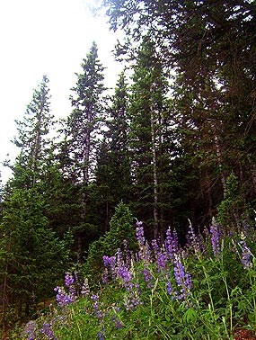 Subalpine forests receive heavy precipitation each year in rain and snow, allowing for tall subalpine firs and pines. Blue penstemon are common along trails in Great Sand Dunes National Preserve.