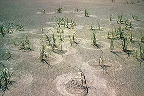 As the wind moves blowout grass, it may make unusual circles in the sand.