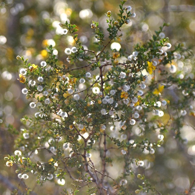 • a creosote bush with small leaves and seed balls