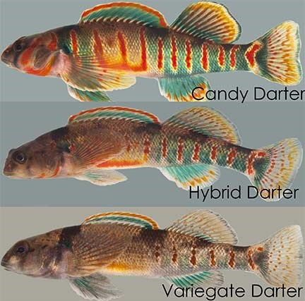 Ecosystem RoleCandy darters are an important link in healthy, balanced aquatic food webs. They help convert and transfer energy in aquatic ecosystems by feeding on a variety of macroinvertebrates (including mayflies and caddisflies) which enable candy darter to grow large enough to become prey for larger fish, like trout and bass. Candy darters are also known to help with the reproduction of freshwater mussels, and in turn the mussels constantly work to filter out pollutants in the water to help keep our rivers clean.