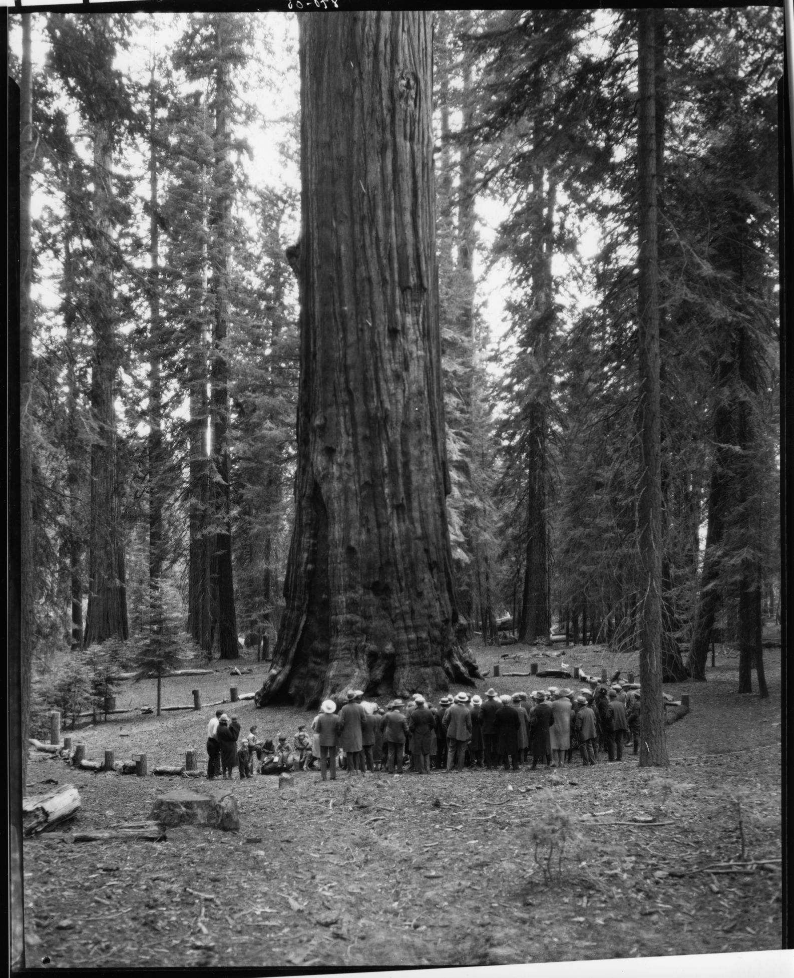 Lindley Eddy, 290621, Giant Forest, SNP, Misc. Groups, California Section American Insitute of Mining and Metallurgical Engineers. At the General Sherman Tree. [8x10 print].