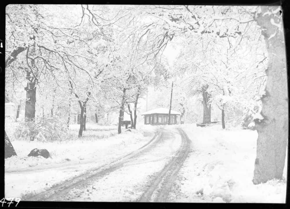Winter Scenes, Ash Mountain Headquarters in snow. Buildings and Utilities.