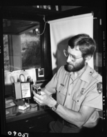Hank Jones, 800521, Ash Mountain, SNP, Research Activities, Safety Officer Richard Powell setting up Carbon Monoxide monitoring equipment at Foothills Entrance Station.