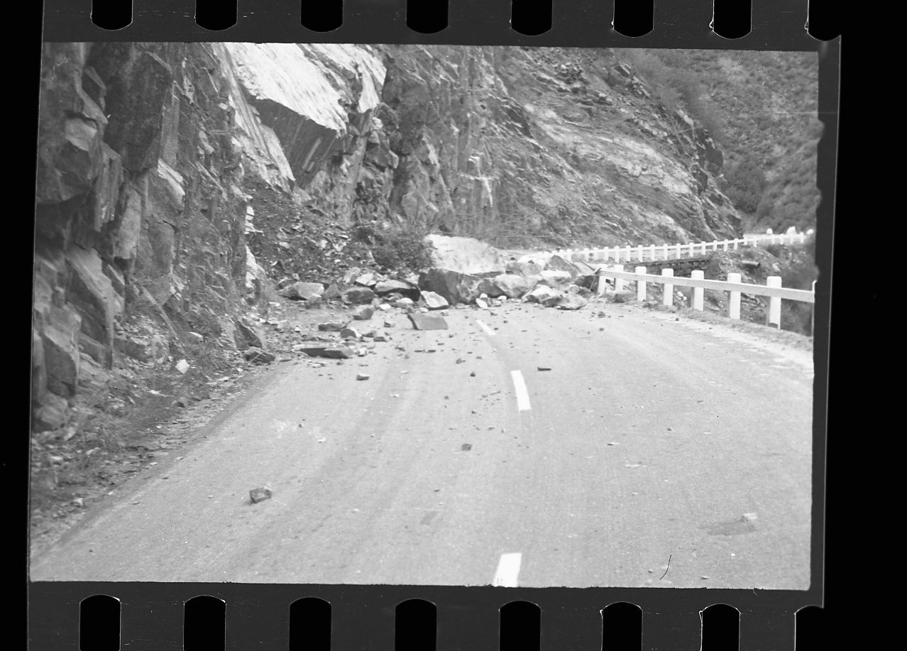 Gordon Bender, 560114, Boyden Cave area, Giant Sequoia National Monument, Flood and storm damage, rock slide on highway.