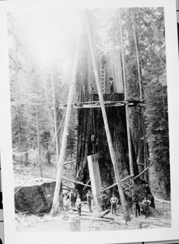 C.C. Curtis, 920000, Converse Basin, Giant Sequoia National Monument, Logging, Misc. Named Giant Sequoias. Cutting the General Noble Tree, later to be called the Chicago Stump. 1892.