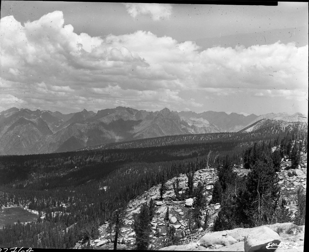 Howard Stagner, 500724, Middle Fork Kings River Canyon, KCNP, View north from Gloacier Valley, Monarch Divide, crop from top.