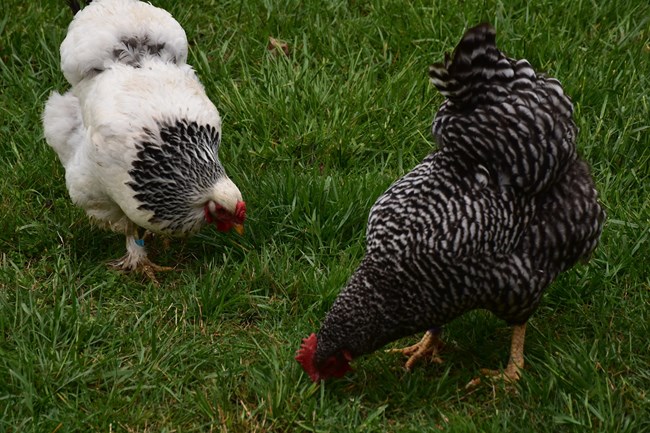 Two chickens at Oxon Hill Farm