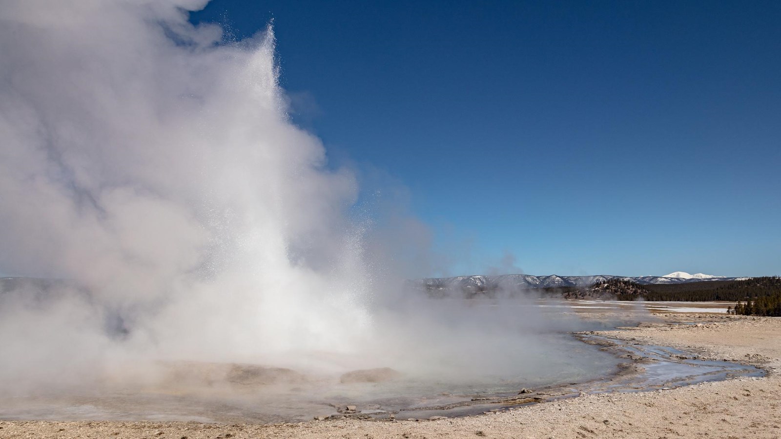 Great Fountain Geyser, on the Firehole Lake Drive, is the only geyser outside of the Old Faithful area with eruption forecasts.