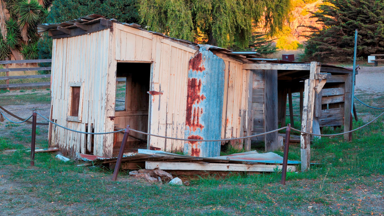 Little is known about this small ranch structure. It may be the "slaughterhouse" depicted on a 1918 Santa Cruz Island Company drawing of Scorpion Ranch. It was used as a meat storage shed during the second half of the twentieth century. The building was in poor condition at the time of the 1997 flood and was further damaged by silt deposition around it from the flood event. In 2002, park staff removed the soil from the base of the building and stabilized it.