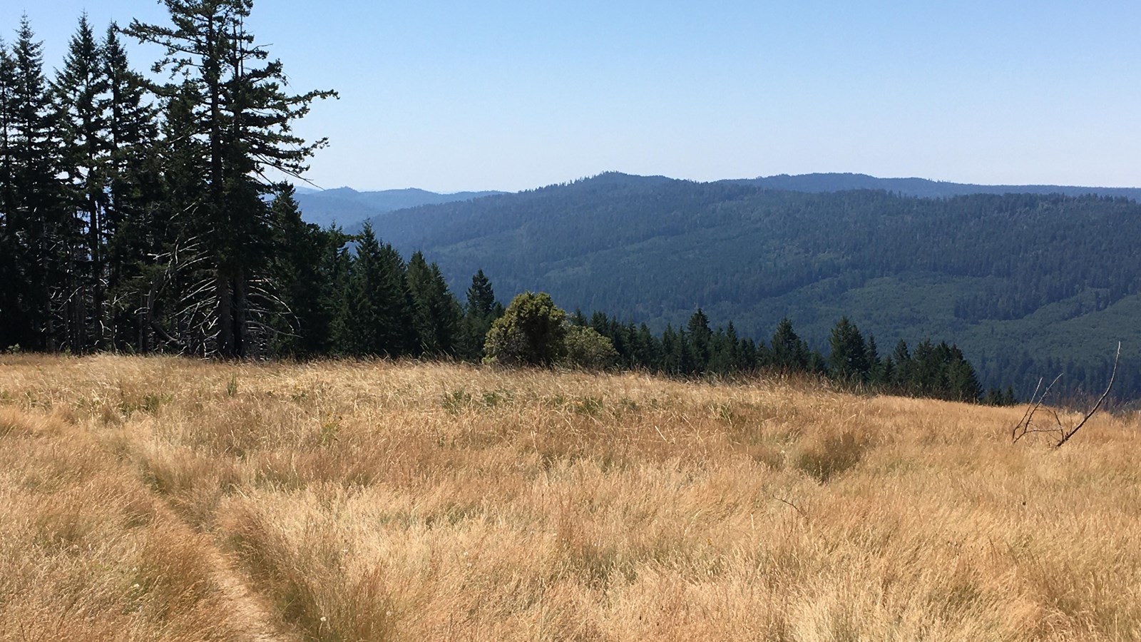 The views at the trailhead are across Redwood Creek to hillsides that were clearcut logged in the 1960s and 1970s. It was only in 1978 - when Redwood National Park was expanded - that most of the Redwood Creek watershed was protected. This expansion of the park's boundary included tens of thousands of acres of land that had been logged in the previous decade.
