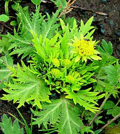 Will Elder, NPS Origin Of Genus Name: Sanicula is Latin meaning "to heal." Presidio Locations: Found in serpentine grasslands and on serpentine coastal bluffs. Range In State: Northern and central California coast. Description: This native perennial of the Carrot Family has tiny, yellow, button-like flowers with five petals in umbrella-shaped groupings on short stems with yellow-green, spiny, maple-like leaves in flat rosettes. Blooms February to April. California Native Uses: The tuberous roots were eaten raw by the Kashaya and the Pomo. |