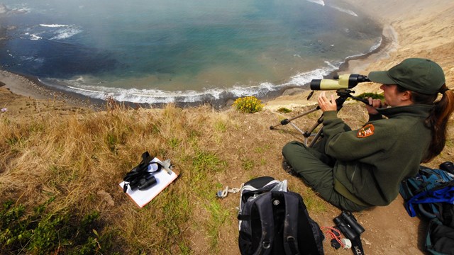 Harbor seals have been monitored at Point Reyes National Seashore and Golden Gate Recreation Area for over 30 years, often with the help of dedicated volunteers. Currently, the San Francisco Bay Area Network Inventory and Monitoring Program conducts surveys once to twice per week throughout the breeding and molting seasons to gather data on numbers of adults and pups, dead pups, red-colored seals, and fresh shark-bitten seals, as well as sources of disturbance.