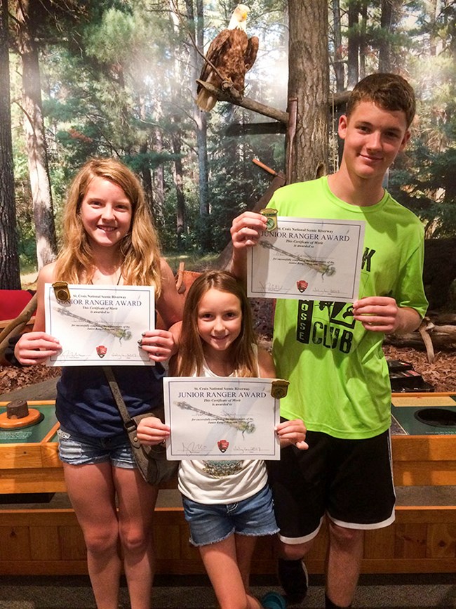 NPS/Jacobowski Are You the Next Riverway Junior Ranger?"Explore, Learn, and Protect!" The Junior Ranger motto is declared often at the Saint Croix National Scenic Riverway to encourage youth to explore, learn, and protect their national park. Not Available to Visit?Start earning your badge by downloading the booklet or requesting one by calling the park at 715-483-2274 or email us at SACN_Info@nps.gov, completing the activities, and take part in two ranger-led video programs. After completing the activities in the junior ranger booklet and watching two videos, you will have completed the requirements to become a St. Croix National Scenic Riverway Junior Ranger! Please mail your completed booklet to the St. Croix River Visitor Center and we will send you your badge and your completed booklet.