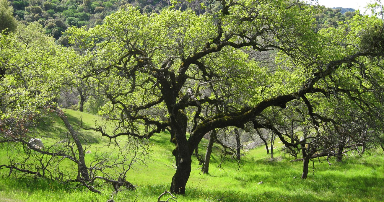NPS Photo Knowledge GapBlue oaks are endemic to California, occurring only within a narrow range that includes valleys and low slopes of the Sierra Nevada foothills and the Coast Ranges. In Sequoia and Kings Canyon National Parks, blue oak woodlands are a prominent habitat in the parks' foothill landscapes. These woodlands host high species diversity, have cultural significance, and are the first scenery that visitors encounter as they enter the parks. Though oak species are thought to be tolerant to high temperature and aridity, the 2012-2016 severe drought raised concerns about mortality of oaks in the parks. An aerial survey by the Forest Service displays on a broad scale how oak stands were affected by the drought across California. Before 2017, blue oak woodlands were not monitored in the parks, so we didn't know the answers to these important questions: What is the extent of tree mortality in the parks' blue oak woodlands? Are blue oaks at risk over the long-term or will they be able to recover while faced with continued climatic change? New Data Collection BeginsIn spring 2017, we collaborated with the U.S. Geological Survey and measured how many and what type of trees had died in the parks blue oak woodlands. We also set up long-term plots for continued monitoring through time. We Need Your HelpSpend a day in the field helping us to remeasure trees and see how our oaks are doing. Volunteers will learn and practice basic forest demography skills and contribute meaningful data to our project so that we might better understand this special environment! Contact us at (559) 565-4287 or email us if you'd like to participate. |