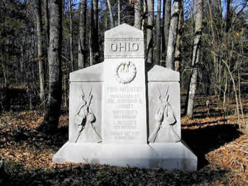 Inscription Reads: (front of monument) OHIO 20th INFANTRY, Commanded by Lt. Col. MANNING F. FORCE, WHITTLESEY'S (3d) BRIGADE, L. WALLACE'S (3d) DIVISION, ARMY OF THE TENNESSEE. (back of monument) This regiment was engaged northwest of Jones field at 8 a.m., April 7, 1862. It then supported the left of the division until about noon, when it returned to the extreme right of the army and was engaged here from 2 to 3 p.m. It had present for duty, officers and men, 491. Its loss was 1 man killed; 1 officer and 18 men wounded; total, 20.