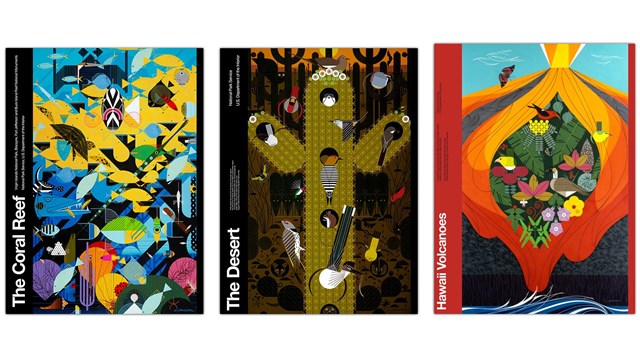 In the 1970s and 1980s, artist Charley Harper created 10 illustrations of the life and landscapes of the national parks. Harpers Ferry Center developed a series of national parks posters using these illustrations to showcase the diversity of plants and animals in their environments. Harper’s distinctive style portrayed the parks in a joyful, fun, and still meticulous manner. Each finished illustration reflects the expectation that we would find the life that pulses in our national parks as exhilarating and uplifting as he did.