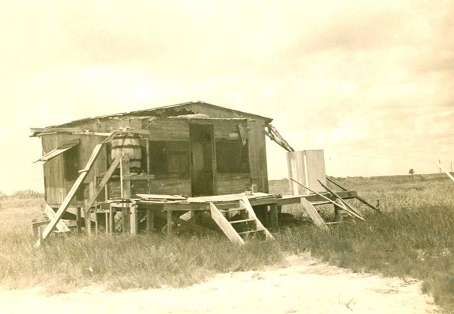 There is an old expression that is true for Flamingo residents for much of the year: "Water, water everywhere, but not a drop to drink." For six months of the year in South Florida--known as the dry season--rain averages only an inch or two a month and clean, fresh water is hard to come by. To survive in the area, residents a century ago devised tactics to collect and store water. Many families used rain barrels, as seen on both corners of the porch of this home, to collect and store rainwater for later use.