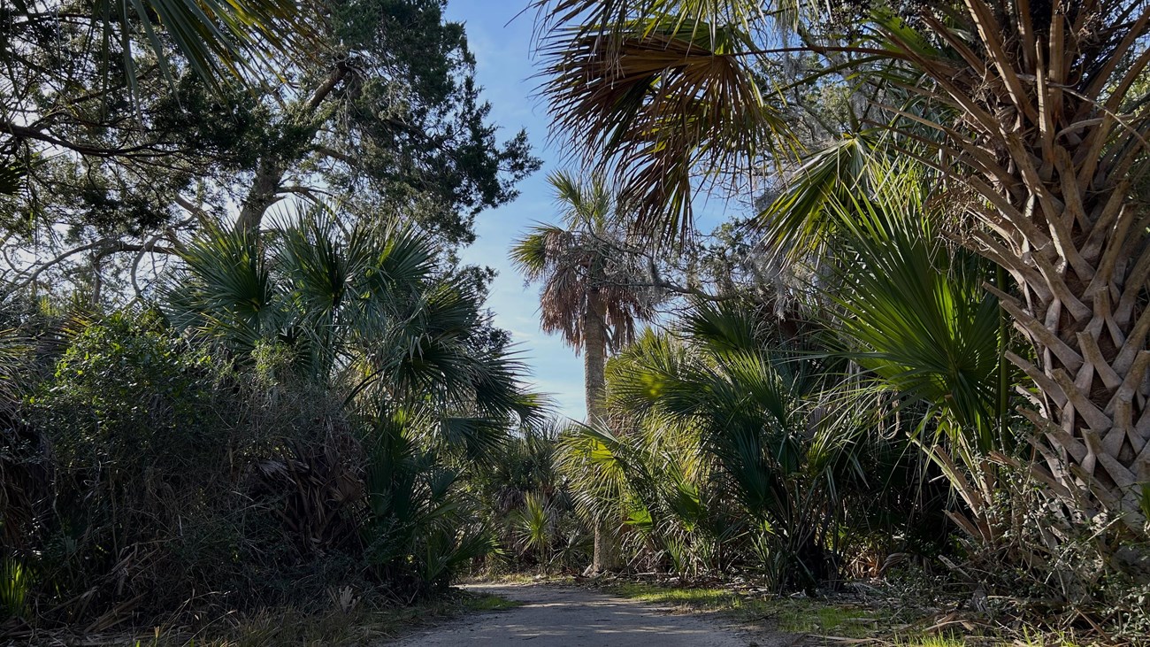 The Lighthouse Overlook Trail guides visitors along open marsh as well as a forested environment offering views of the Savannah River, and Tybee Island. The 1.7 mile out & back trail offers the island's best views of the historic Cockspur Island Lighthouse.