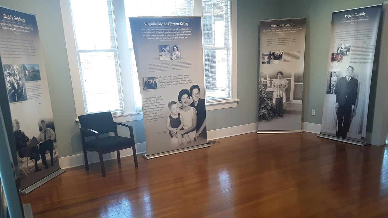 The visitor center, set in a two-story former residence adjacent to the birthplace home, features exhibits on the childhood of William Jefferson Clinton plus a Jefferson National Parks Association (JNPA) bookstore. Visitors can park vehicles along Division Street; accessible and large-vehicle parking (RVs, buses) is available on 2nd Street.